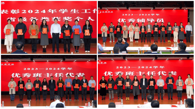 会上,观看了2024年学生工作视频,参会领导向2024年甘肃省“优秀辅导员”、河西学院2023-2024学年“优秀班主任”“优秀辅导员”荣誉称号获得者,以及在2024年甘肃省高校辅导员素质能力提升骨干训练营、2024年全省高校辅导员优秀工作案例评选、甘肃省军事理论课比赛中取得优异成绩的老师颁发了荣誉证书。
