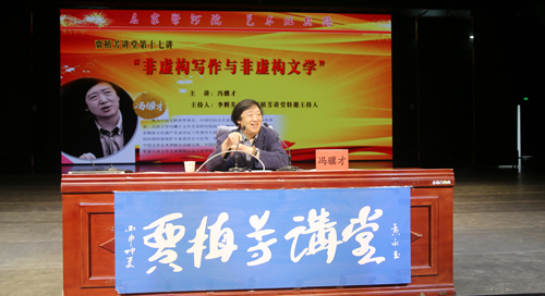 演讲中,冯骥才先生先从张掖古代著名画家史小玉谈起,风趣地指出“张掖莫忘史小玉”,赞誉河西学院是中国最美的大学之一。接下来冯骥才先生谈了“非虚构”的国内概况以及非虚构与文化记忆的密切关系,围绕“什么是非虚构”谈了非虚构写作中的“口述史”方法,以及非虚构文学与虚构文学的不同之处,并重点讲了文学的三个基本要素:一是形象,二是细节,三是语言。两个多小时的演讲,冯先生精神饱满、声音洪亮,演讲内容广博,引人入胜。
