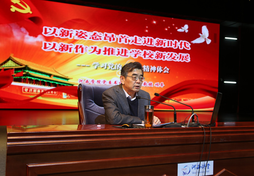 11月9日下午,河西学院举行学习贯彻党的十九大精神首场报告会。学校宣讲团团长、党委书记黎志强为全校师生作了题为《以新姿态昂首走进新时代 以新作为推进学校新发展——学习党的十九大精神体会》首场报告。全校科级以上干部,教师党员、学生党员,辅导员,思想政治理论课教师逾900人听了报告。