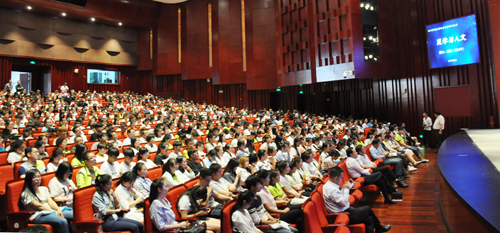 下午,彭裕文教授在河西讲堂为我校师生做了题为《医学与人文》的报告。校党委书记黎志强、副校长孙福宝、医学院、临床医学院、附属医院、院办、发展规划处、教务处、国资处等部门负责人及医学院2015级、2016级医学本科专业学生800余人聆听了报告。报告会由副校长张汉燚主持。