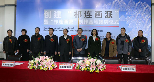 11月29日,“祁连画派”创建暨创作基地揭牌仪式在河西学院美术楼展厅举行。市委常委、宣传部长康清和河西学院党委书记黎志强共同为基地揭牌,副市长陈华出席揭牌仪式。市委宣传部、市文联、河西学院美术学院、市社科联、张掖祁连画院共同签订合作协议书。市委常委、宣传部长康清和河西学院党委书记黎志强分别致辞,揭牌仪式由河西学院副校长张汉燚主持。