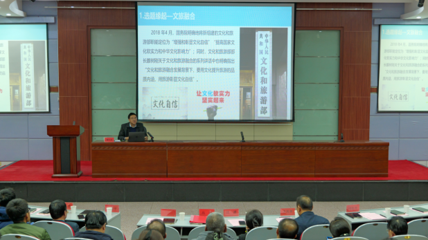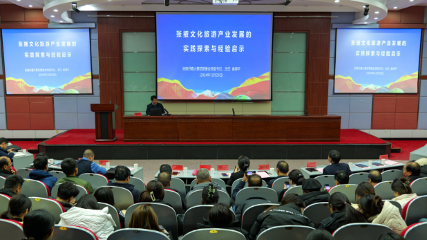 揭牌仪式后,举办了河西走廊文旅高质量发展论坛,河西学院图书馆馆长闫廷亮教授主持论坛。复旦大学旅游学系博士生导师沈涵教授,张掖丹霞大景区管委会袁得平主任,河西学院历史文化与旅游学院院长柳红波教授分别作了题为“文旅行业高质量发展的宏观分析”“张掖文化旅游产业发展的实践探索与经验启示”“河西走廊文化演艺与旅游深度融合机制与路径”的主旨报告,内容丰富,观点新颖,契合行业发展实际需求,对河西文旅产业发展具有重要的实践指导价值。