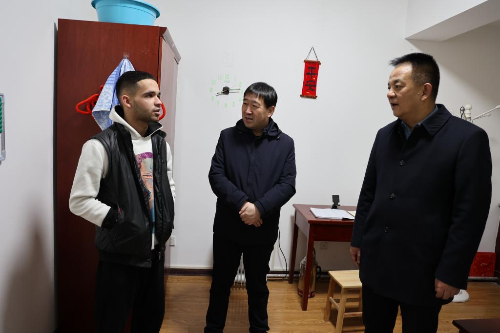 校领导在检查中强调,校园安全是学校各项工作的重中之重,各单位、各部门要高度重视寒假期间安全稳定工作,认真履行主体责任,切实增强安全意识,加强安全教育,强化安全管理,持续坚持并切实将安全检查机制落实到位。各单位、各部门要深入落实安全防范措施,关注离校师生动态,加强留校师生管理,重点做好实验室使用报备、巡查和监管工作,保障实验室安全运行和师生人身安全,确保寒假期间师生平安和校园安全稳定。各相关部门要在寒假期间加强值班值守,做好应急准备,确保一旦发生紧急情况能够迅速响应、有效处置。此外,校领导在看望留校学生后,特别强调,各相关单位、部门要加强对留校师生的关心关爱,确保他们度过一个温暖、平安、祥和的假期。期间,校领导专程慰问了后勤战线干部职工。