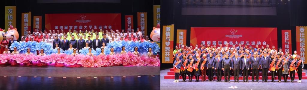 10月16日下午,学校举行第四届甘肃省大学生运动会颁奖典礼,学校领导赵凯、张汉燚、王兵、周均发、徐德祯、马聪,党委常委高荣、王德,全校副科以上干部、体育学院全体教师,获奖代表,志愿者代表,2019级新生代表近900人参加。