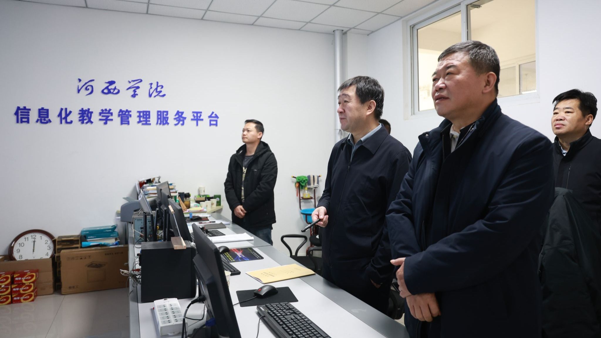 王向阳、李广通过信息化教学管理服务平台调度了全校教学运行情况,并深入课堂听课。课间与任课教师亲切交谈,鼓励教师在课程讲授中更加注重引入本学科前沿动态,灵活运用信息化手段赋能课堂教学质量。要求教务部门对全校听课中发现的问题逐一梳理,督促整改。