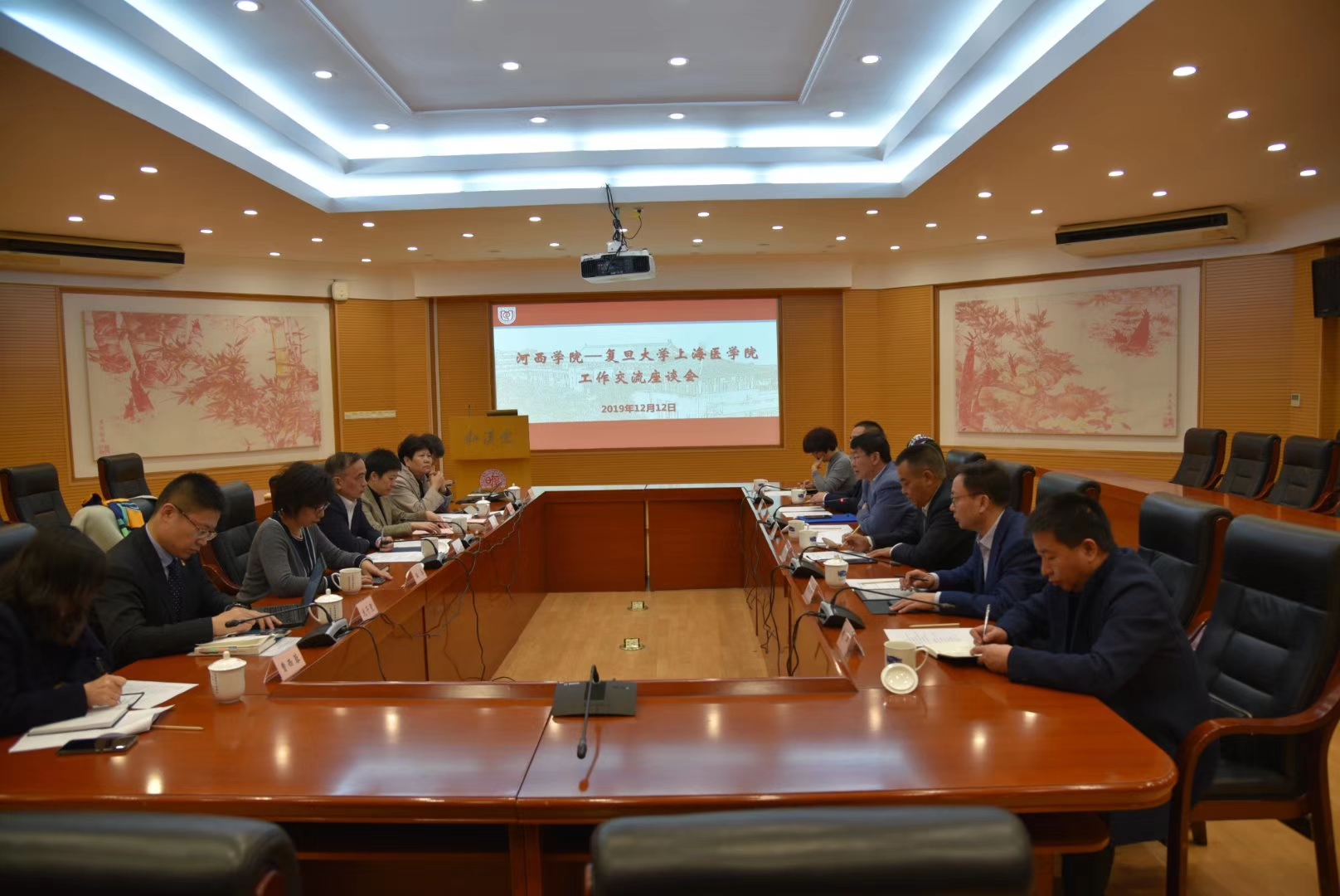 12月12日,复旦大学党委副书记、纪委书记兼复旦大学上海医学院党委书记袁正宏主持召开河西学院—复旦大学上海医学院合作交流座谈会,复旦大学上海医学院、复旦大学上海医学院党政办公室、复旦大学上海医学院研究生院、复旦大学上海医学院临床医学院等部门和我校校长张汉燚,党委常委、副校长周均发,发展规划处、医学院、临床医学院及附属医院负责同志参加。双方就设立复旦病理甘肃分中心、召集全国性医学学术会议、助理全科医生培养和医联体建设、医学生的社会实践以及博士服务团等合作事宜进行了充分讨论,交换了意见,达成了共识。