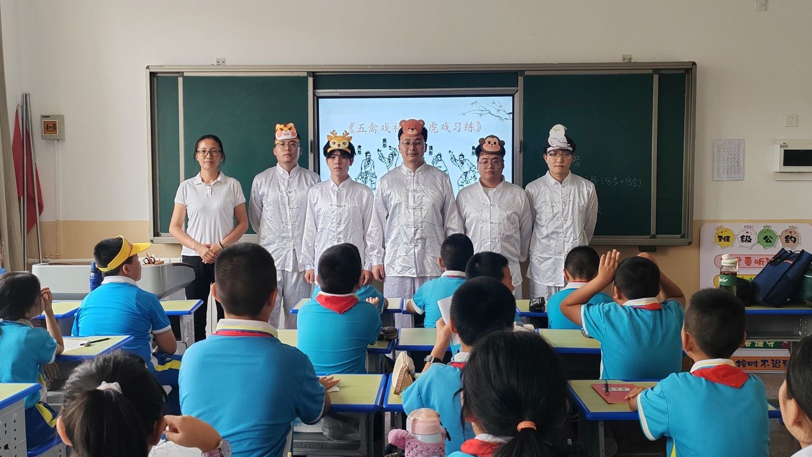 师生们精心打磨教学方案,从“遇见华佗学五禽戏”切入,用“模仿小动物”的趣味方式替代枯燥讲解。课堂上,从“虎戏”的刚劲有力到“鸟戏”的轻盈舒展,用通俗易懂的语言讲解动作与中医“仿生养生”“强身健体”的关联。大学生向小学生分享中医药作为“中华瑰宝”的历史价值,在实践中深化了对“文化继承者”身份的认知。
