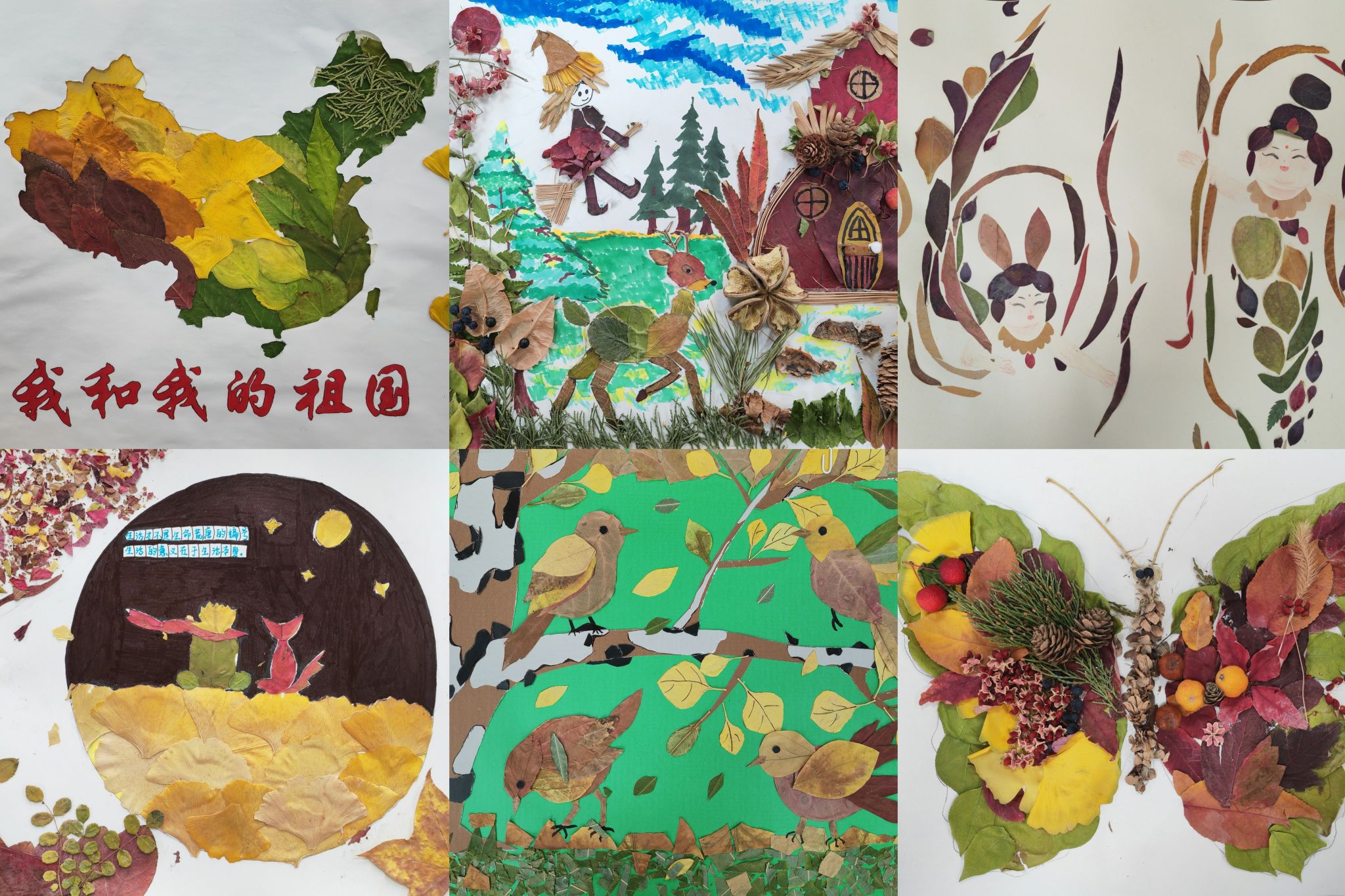 活动自启动以来,参赛同学们漫步秋意盎然的校园,细心采集银杏、枫叶、梧桐等落叶作为创作素材。紧密结合专业特色,围绕“秋叶绘心,感恩前行”主题,运用植物学、生态学概论等课程中所学的理论知识,充分发挥想象力与创造力,将一片片天然的叶片巧妙拼贴组合于画纸之上,构成了一幅幅构思精巧、富有层次感和情感温度的创意画作。每幅作品旁均附有素材采集地的实景照片与简洁的文字说明,如“图书馆东侧林荫道”“明理湖畔”“胡杨林旁”等,生动地将熟悉的校园景观、个人的艺术创作与内在的情感表达紧密串联,使平凡的落叶被赋予了成长、岁月沉淀等深远的象征意义。