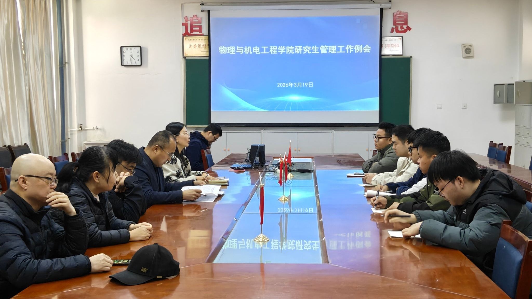 3月19日,物理与机电工程学院召开研究生管理工作例会。学院分管研究生工作负责人、研究生导师、研究生教学秘书及研究生班主任参加。