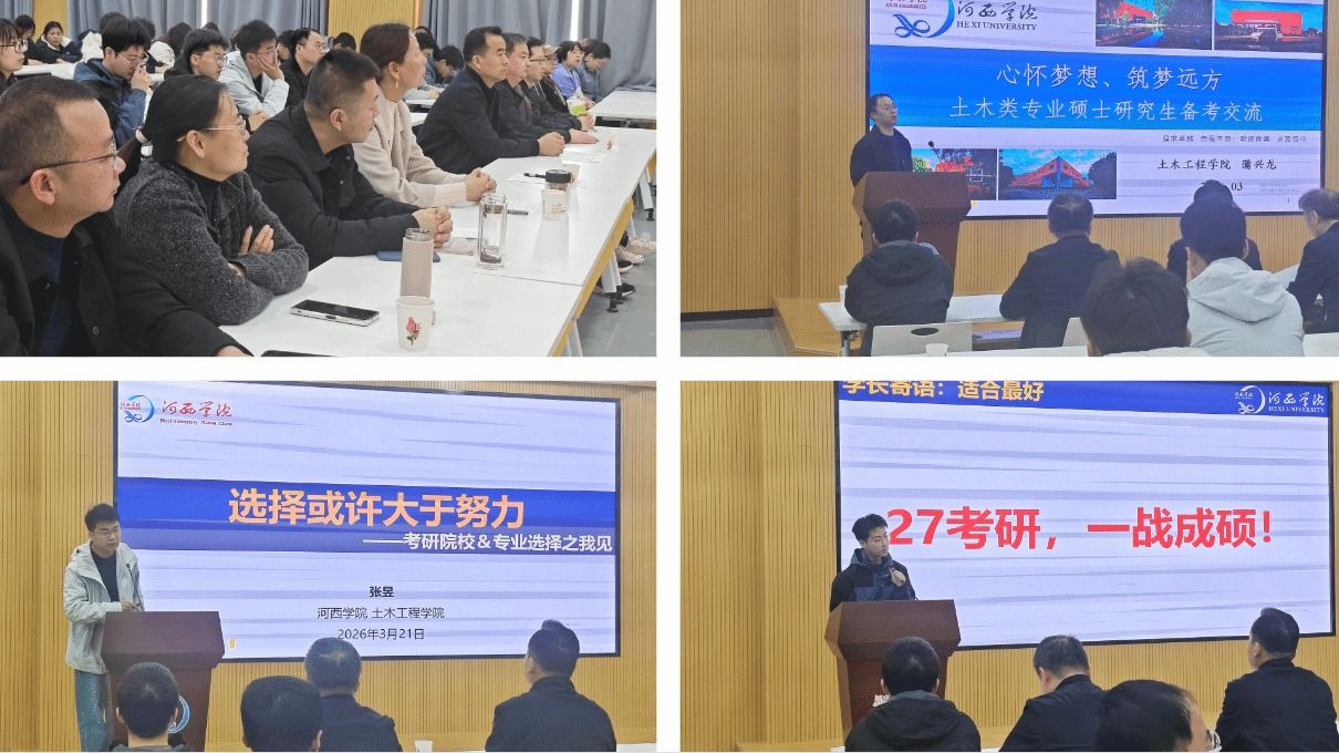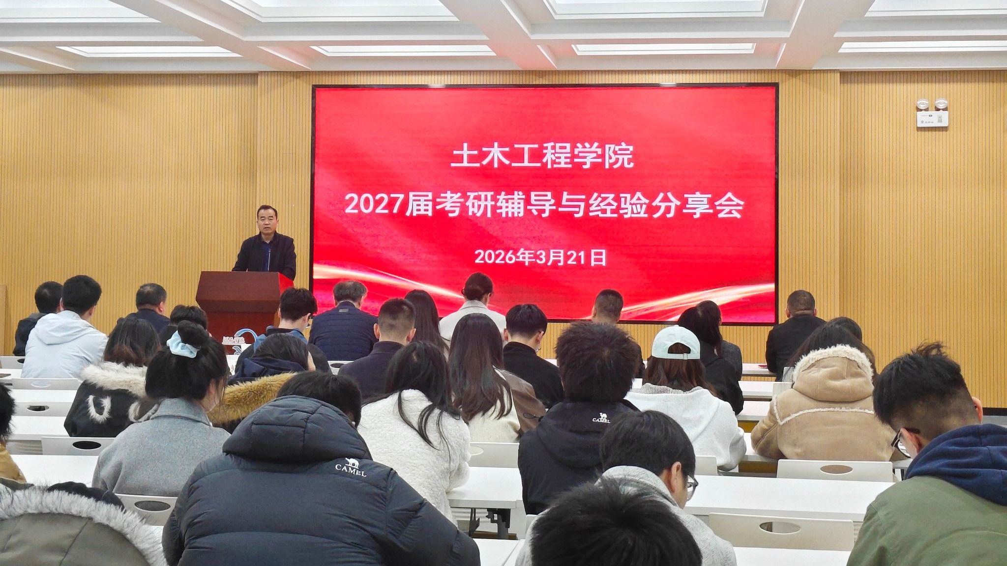 3月21日,土木工程学院召开2027届考研辅导与经验分享会。学院负责人、各教研室主任、2027届毕业班班主任及2023级全体同学参加。