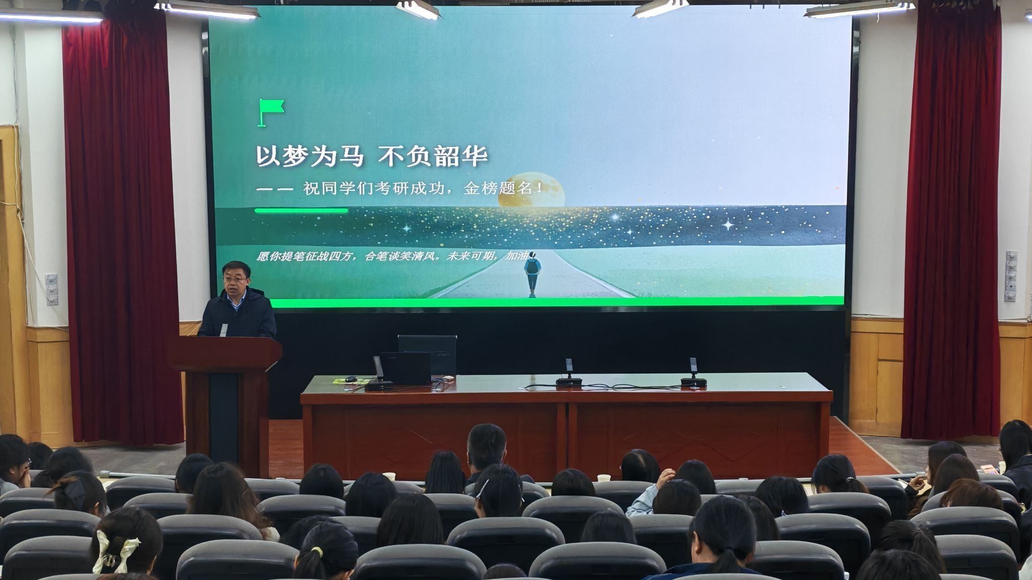 会上,学院党委负责人以历届毕业生考研、就业数据和现状为依据,结合当前教育行业发展趋势、深入分析了考研的必要性与发展前景,鼓励同学们以梦为马,不负韶华、研途致远,重塑未来。