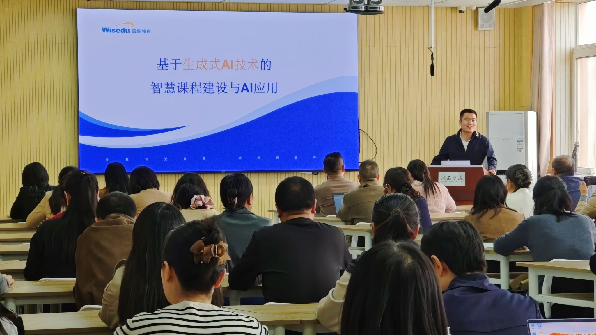 4月15日,学校举办“AI智慧教学解决方案——用AI重新定义教育”专题培训。培训由江苏金智教育信息股份有限公司智慧教育业务总监刘长伟主讲,全校20个二级学院的70余名骨干教师参加。