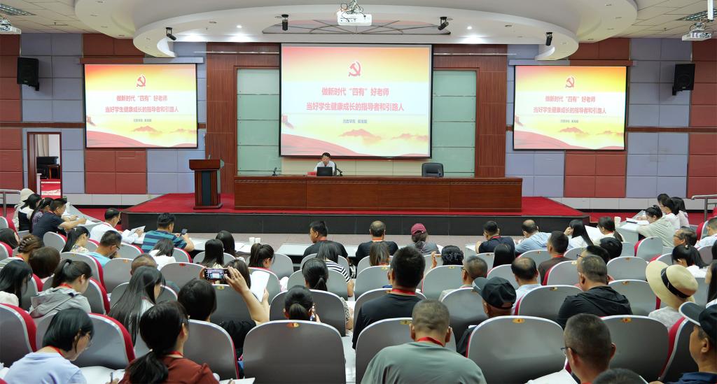开班式结束后,马克思主义学院党委书记蔺海鲲教授为培训教师作了《做新时代“四有好老师”,当好学生健康成长的指导者和引路人》的专题交流。
