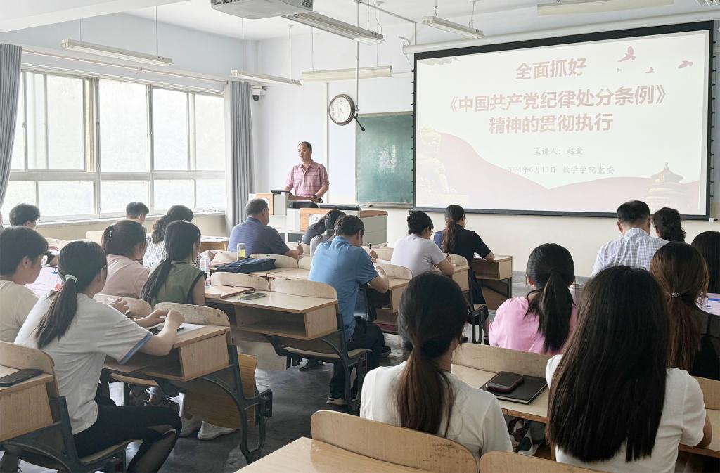 党课从《中国共产党纪律处分条例》(以下简称《条例》)修订的背景和意义出发,阐述了纪律是党的生命线,作为规范党组织和党员行为的基础性法规,《条例》在党内法规体系中发挥着重要作用;党的十八大以来,对《条例》的3次修订,表明我们党始终坚持严的基调,全面加强党的纪律建设,在全链条全周期全覆盖上持续用力,不断增强自我净化、自我完善、自我革新、自我提高能力,为全面推进中国式现代化强国建设、民族复兴伟业提供坚强纪律保障。赵爱同志重点围绕深刻领会主旨要义、增强遵规守纪自觉、切实抓好贯彻落实三个方面强调了学院党委要担负起全面从严治党政治责任,认真抓好《条例》的贯彻执行,对违反党纪的问题,发现一起坚决查处一起,切实维护纪律的刚性、严肃性;要求每一位党员要认真履行党章赋予的职责,强化监督执纪问责,敢于善于斗争,严格执纪、精准执纪,不断推进全面从严治党向纵深发展。