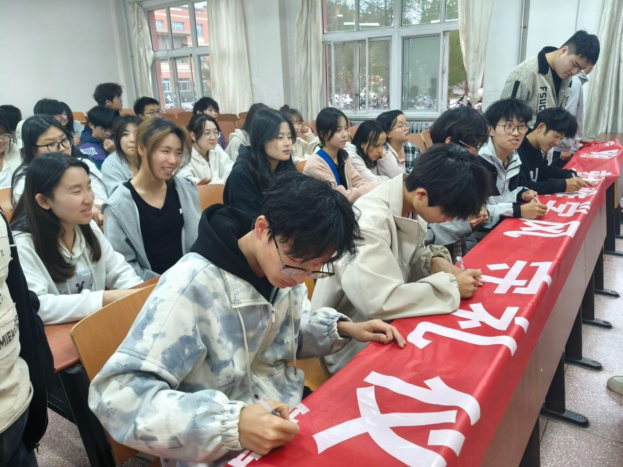 活动现场,广大学生仔细阅读《新时代公民道德建设实施纲要》《高等学校学生行为准则》《新时代青少年网络文明公约》和学校相关管理规定,依次在横幅上郑重签名,表示要养成良好的学习生活习惯,自觉遵守学校各项制度,辨别是非、抵制网络谣言,不沉迷网络,网络交流文明互动、理性表达,传播“网络好声音”,争当文明行为践行者。