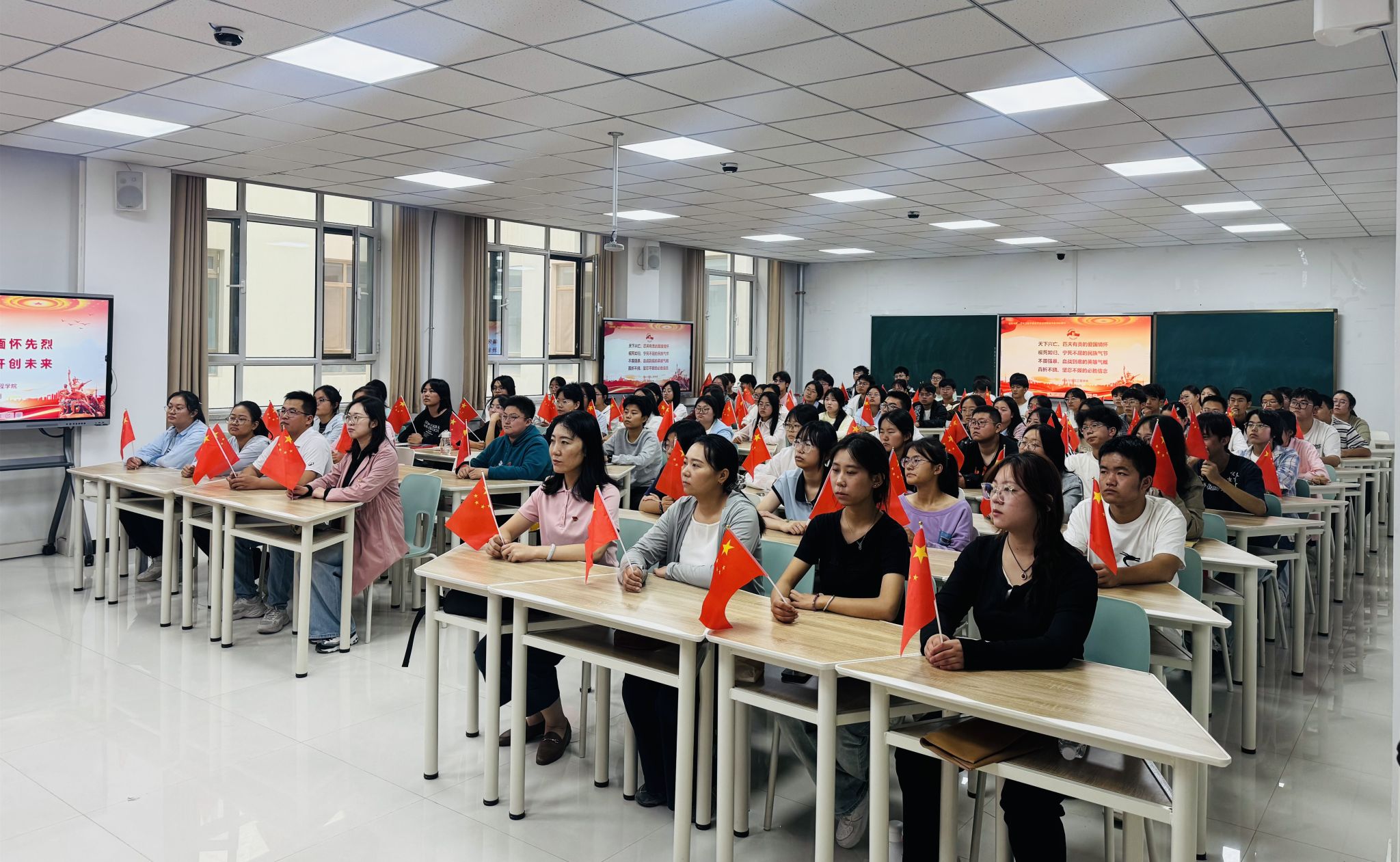 9月3日上午9时,纪念中国人民抗日战争暨世界反法西斯战争胜利80周年大会在北京天安门广场隆重举行。农业与生态工程学院组织师生在多个分会场集中观看大会直播实况,激发广大师生的爱国热情和民族情怀。