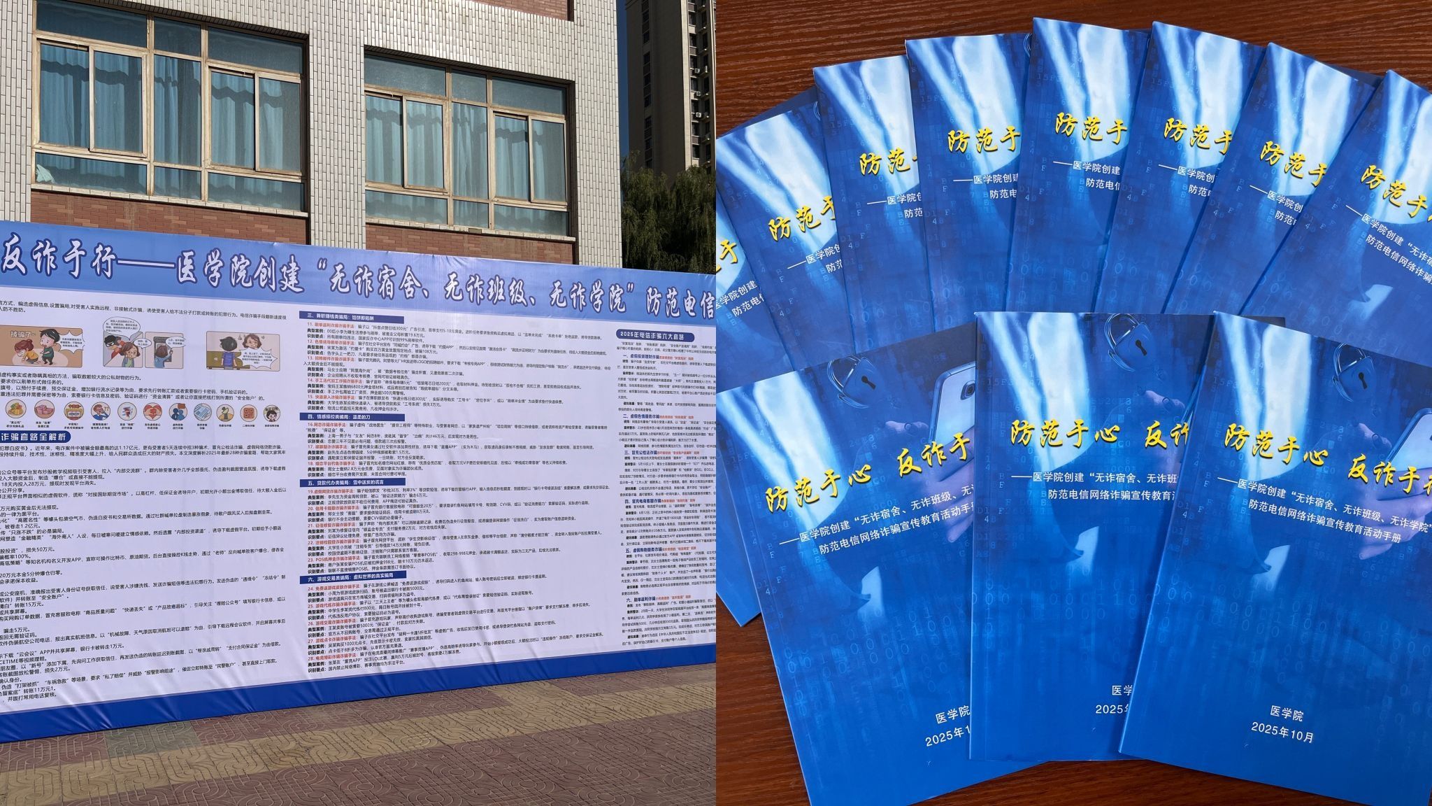 为切实增强学生防范电信网络诈骗的意识和能力,筑牢校园安全防线,医学院近期组织开展了“无诈宿舍·无诈班级·无诈学院”防范网络诈骗创建活动。活动通过校园防诈知识宣传、防诈主题班会、防诈手册发放、举办防诈专题讲座等方式,将反诈防骗的知识与意识深植于学生心中,取得了显著成效。