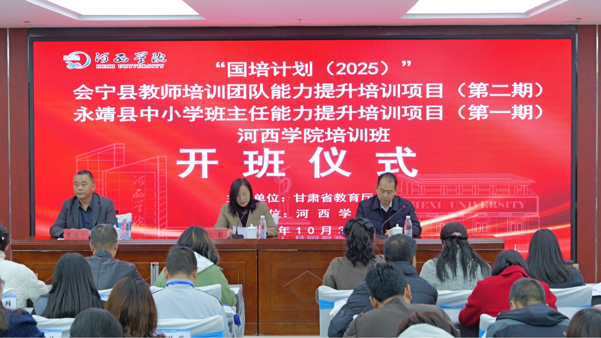 10月27日,由甘肃省教育厅主办,河西学院承办的“国培计划(2025)”会宁县教师培训团队培训能力提升培训第二期和永靖县班主任能力提升培训项目(第一期)举行开班仪式。继续教育学院、教师教育学院负责人,学科负责人、班主任、培训学员共120人参加。