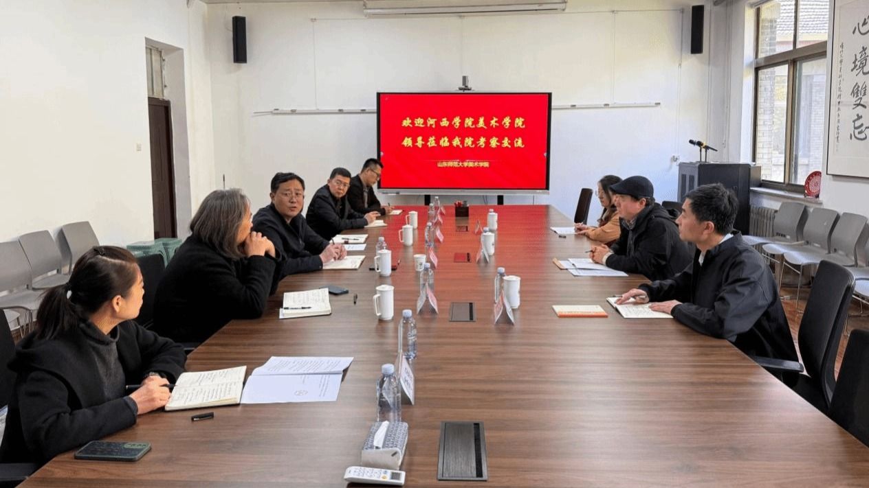 10月29日,美术学院相关负责人一行赴山东师范大学美术学院考察交流,并召开座谈会。山东师范大学美术学院党委书记崔勇、党委副书记葛晓霞,副院长孙夕恺、吴磊、李民、孟哲及河西学院访学教师和交流学生参会。双方围绕学科建设、师资培养、硕士点申报及学生联合培养等议题展开深入探讨。