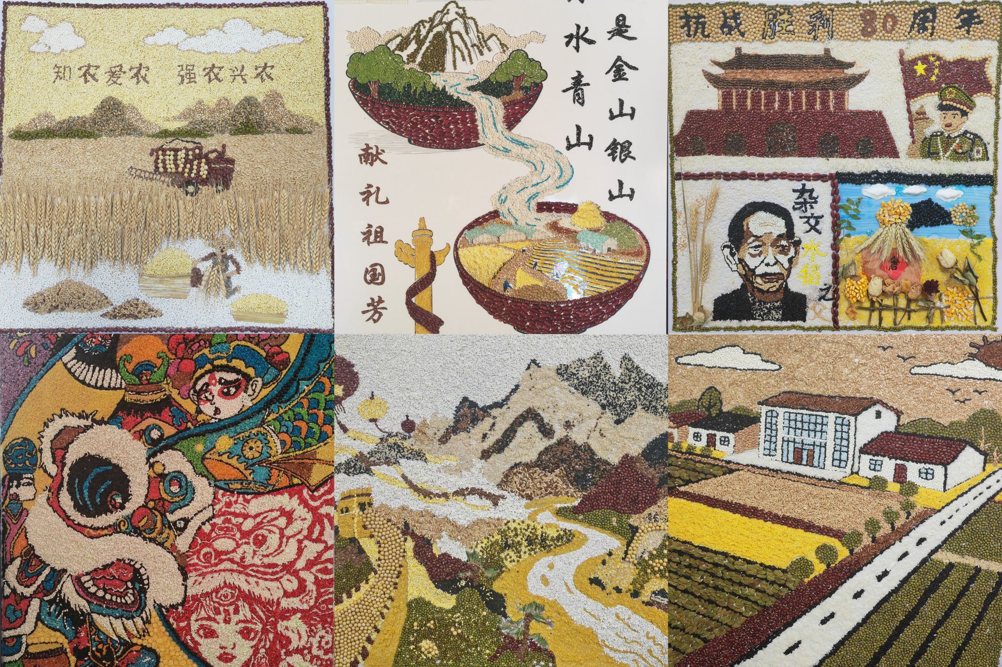 终评现场,作品展示区成为了一场别开生面的美育与专业教育课堂。参赛选手们以“河农1号”“河农2号”玉米种子以及张掖本地出产的大米、小米、葵花子等各类作物种子为素材,通过精巧的拼贴与构图,将种子的自然形态之美与生命韵律转化为一幅幅生动传神、寓意深远的艺术作品。作品主题鲜明,深刻诠释了“两山”理念、国家粮食安全、农业农村现代化和美乡村建设等时代命题,充分展现了农科学子知农爱农、强农兴农的使命担当。
