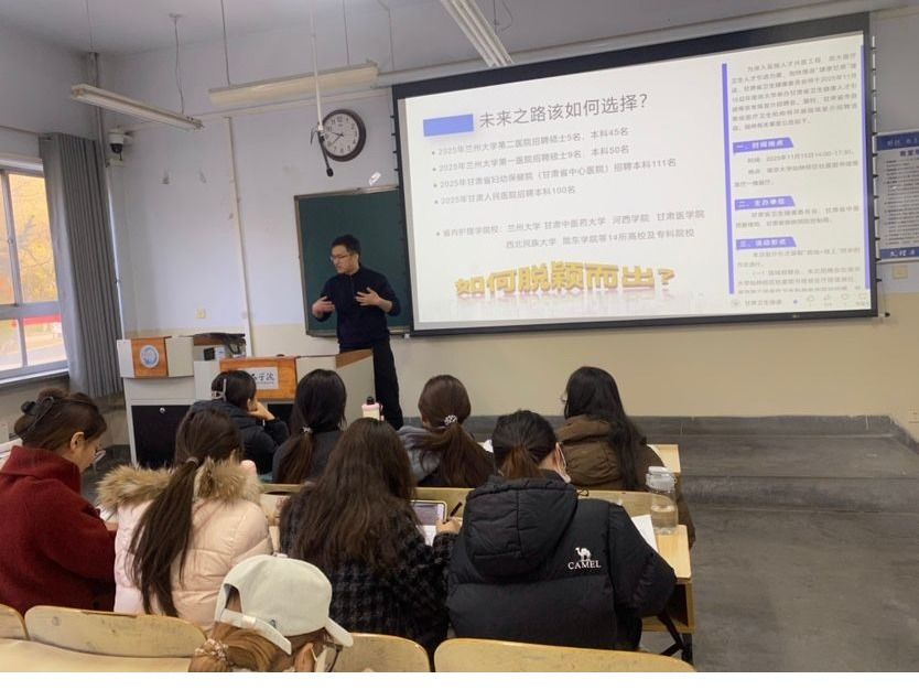 11月8日至9日,护理学院举办优秀校友励志成才报告会,校友会第三届理事会副会长、2007届校友豆宝珍,兰大医院手术室护师、2015届校友郑军应邀作报告,报告会由学院党委负责人主持,辅导员及大三年级学生参加。