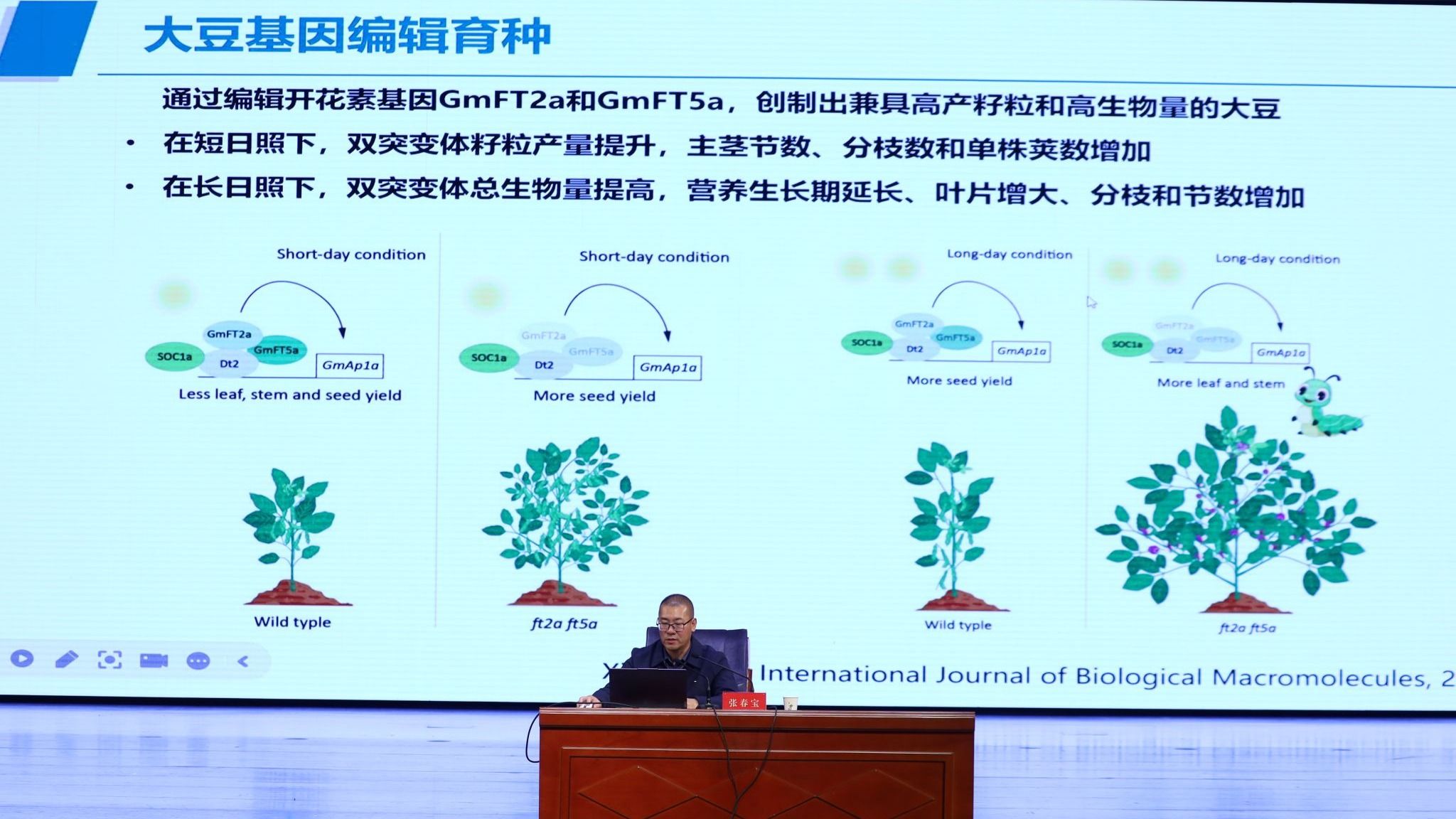 张春宝研究员聚焦《大豆生物育种研发与应用》,展开深入解读。从杂种优势利用的核心原理,到育种技术的迭代创新,从实验室里的日夜钻研,到田间地头的成果转化,系统梳理了大豆育种的艰辛历程与重大突破,让师生们深化了对大豆育种领域的认知。