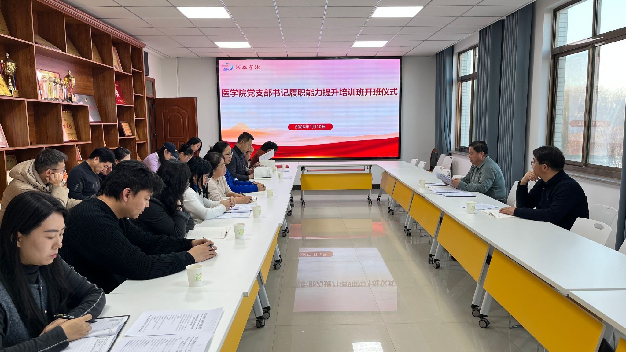 医学院按照学校党委建设党支部书记“双带头人”培育建设目标,对5个教工党支部进行调整。为切实加强新任党支部书记、委员的履职能力和提高综合素质,医学院举办党支部书记履职能力提升培训班。1月10日,培训班开班典礼如期举行。医学院党委委员、各党支部书记、委员参加。