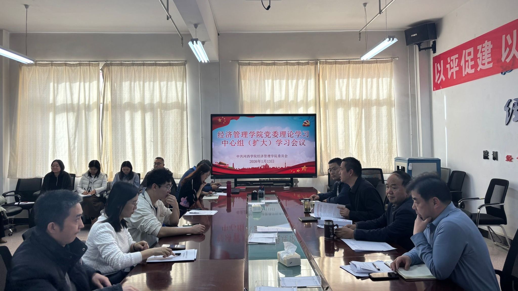 1月13日,经济管理学院召开党委理论学习中心组(扩大)学习会,学院党委理论学习中心组成员,教工与学生支部委员参加。