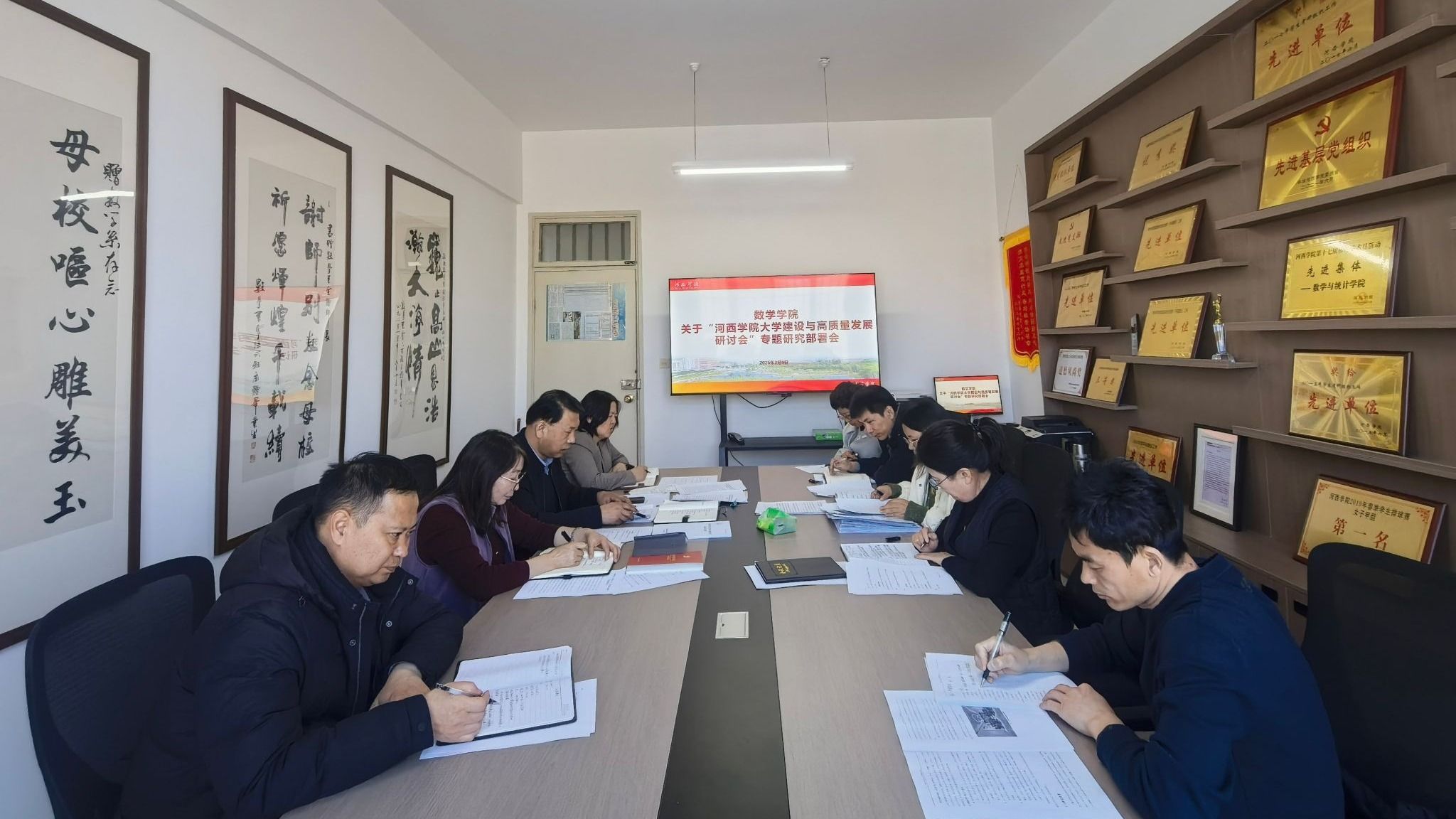 会议集中学习了习近平总书记关于教育的重要论述,传达学习学校大学建设与高质量发展研讨会精神,特别是校领导主旨报告与讲话要求。与会人员围绕“数学学院在全校大学建设中的责任担当”“对标大学设置标准补齐学科发展短板”“以高质量发展支撑学校整体目标实现”等内容展开讨论。