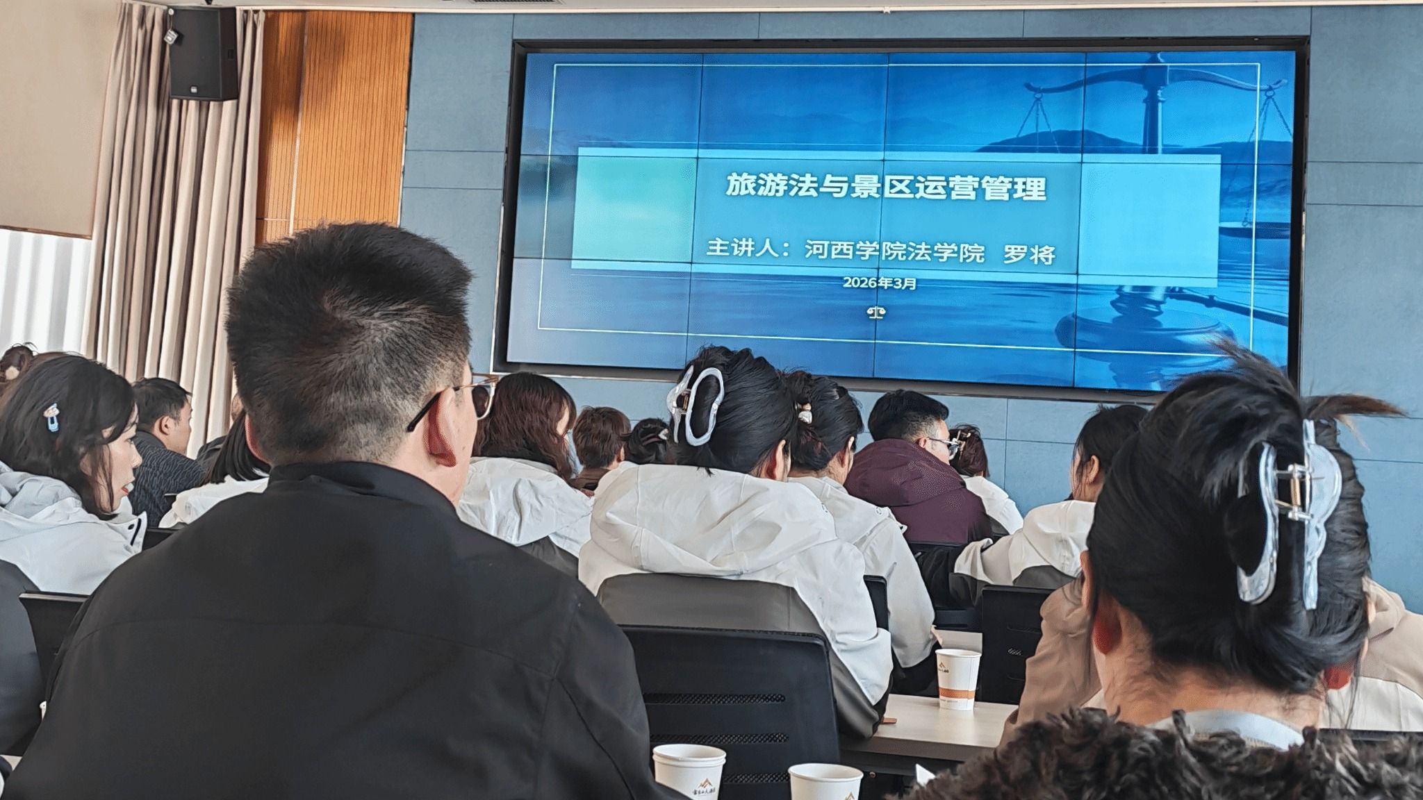 其间,深入宕昌县富羌资产运营集团、新城社区、人间有爱志愿者协会、官鹅沟旅游开发公司等单位开展走访调研。在官鹅沟旅游开发公司,罗将教授以“旅游法与景区运营管理”为题,为景区导游及管理人员开展专题讲座。