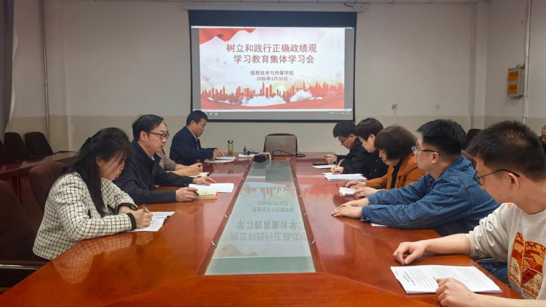 3月30日,信息技术与传媒学院召开树立和践行正确政绩观学习教育集体学习会。学院领导班子、全体党员干部参加,学院党委负责人主持并讲话。