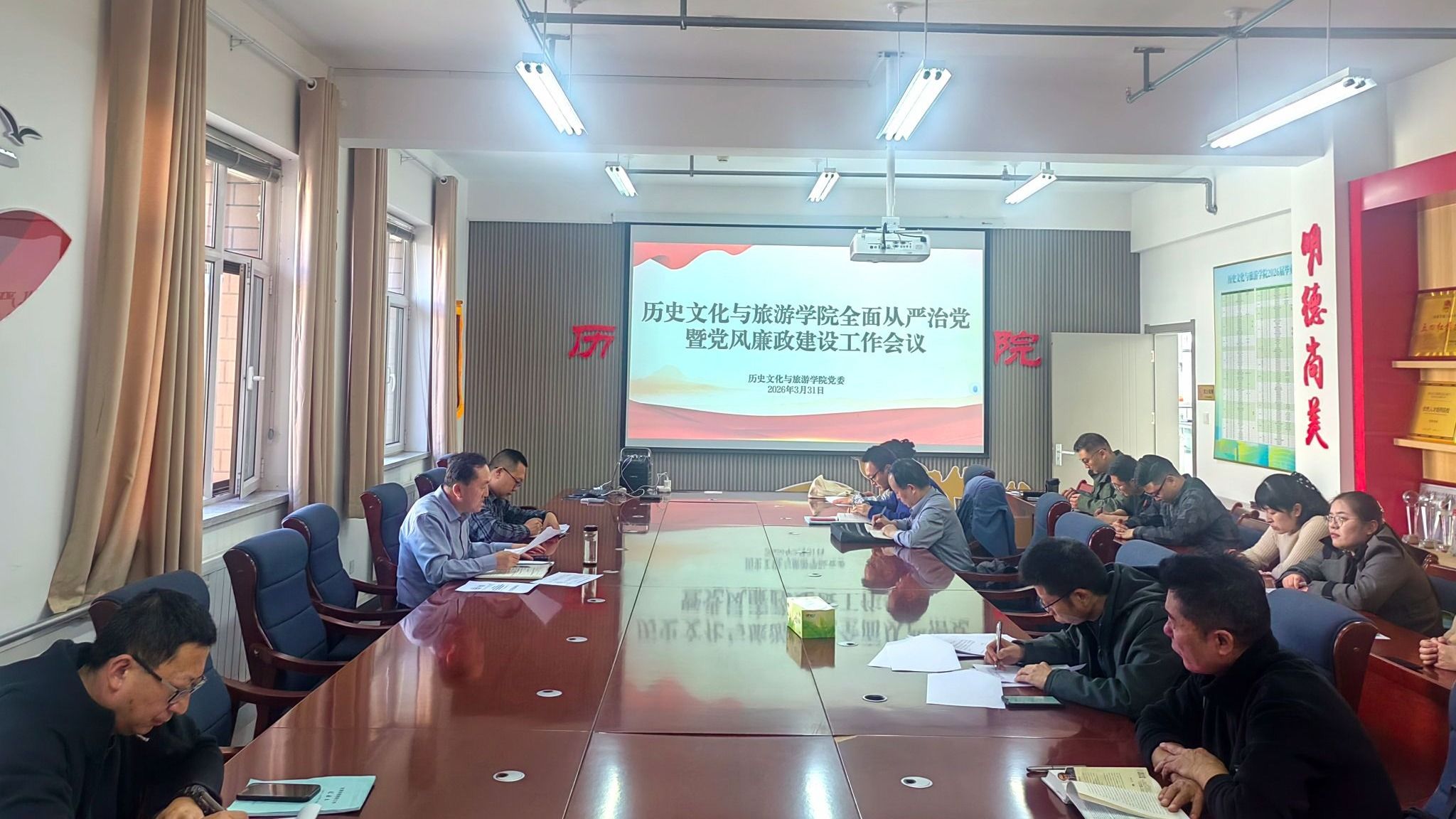 3月31日,历史文化与旅游学院召开2026年全面从严治党暨党风廉政建设工作会。学院党委负责人主持,学院全体教职工参加。
