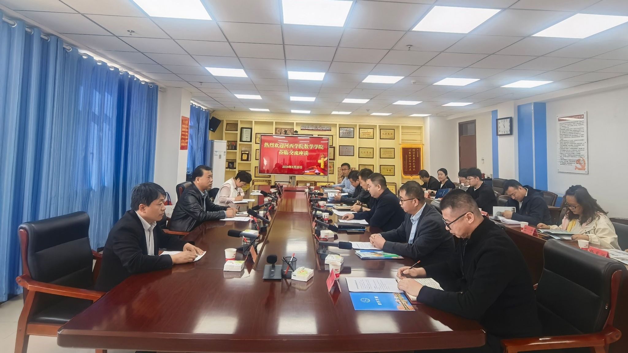 座谈会上,林万军介绍了西部计划、实习+就业等相关政策支持,表示当地基础教育阶段专业教师缺口较大,亟需各学科优秀人才充实教学一线,希望以此次座谈为契机,与河西学院建立正式合作关系,鼓励河西学子到克州实习或就业,多渠道赴疆发展。学院党委负责人介绍了学校基本情况及数学学院办学特色与人才培养成果,表示将紧密围绕区域需求,精准对接克州教育人才缺口,推动双方合作从无到有、落地见效。双方围绕教育实习基地建设、毕业生定向推荐及西部计划政策衔接等内容深入交流,并就建立常态化沟通机制达成初步意向。