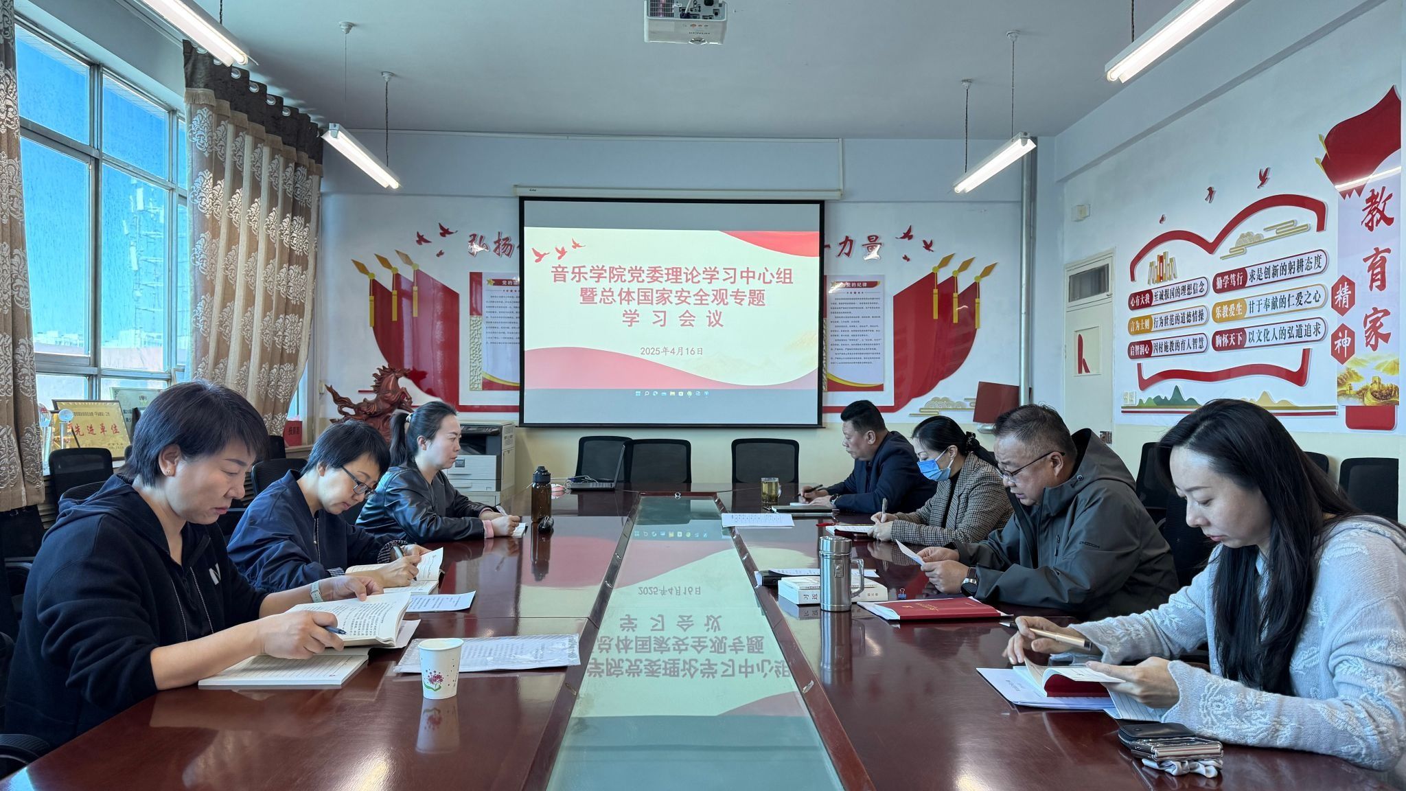 4月16日,音乐学院召开党委理论学习中心组学习会,专题学习研讨树立和践行正确政绩观、总体国家安全观。学院党委理论学习中心组成员参加。