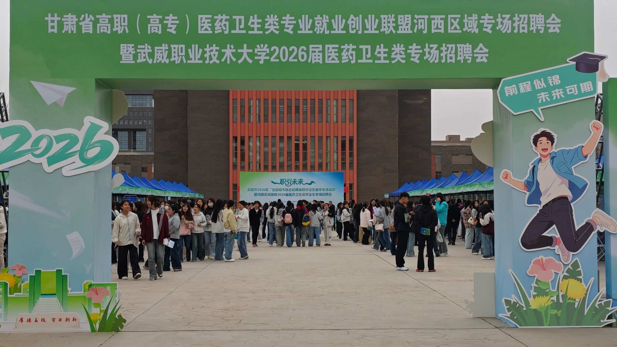 4月15日,医学院负责人带领辅导员及100余名毕业生赴武威职业技术大学,参加甘肃省高职(高专)医药卫生类专业就业创业联盟河西区域专场招聘会暨武威职业技术大学2026届医药卫生类专场招聘会。