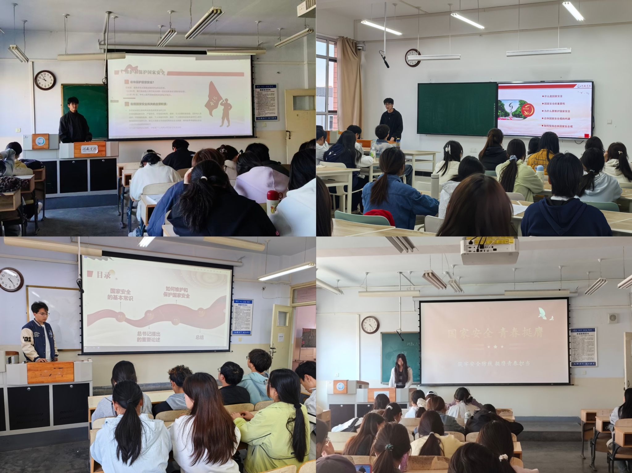 活动期间,各团支部通过理论学习和实践体验相结合的方式,推动国家安全教育走深走实。学院遴选部分团支部,主动对接河西学院大学生总体国家安全观宣讲团成员,为团员青年讲授示范主题团课;组织“青马”班学员深入各团支部,带领青年学生学习理论文章、观看国家安全教育公开课、开展学习研讨交流,引导大家准确把握当前国家安全形势,深刻理解统筹发展和安全的重大意义。