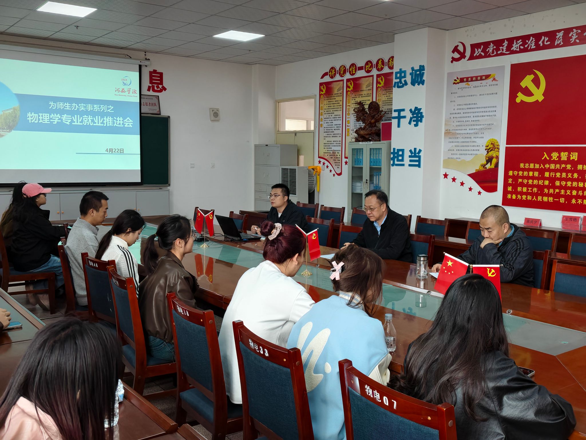 4月22日,物理与机电工程学院召开物理学专业就业推进会,学院负责人、毕业班班主任、辅导员及2026届物理学专业30余名毕业生参加。