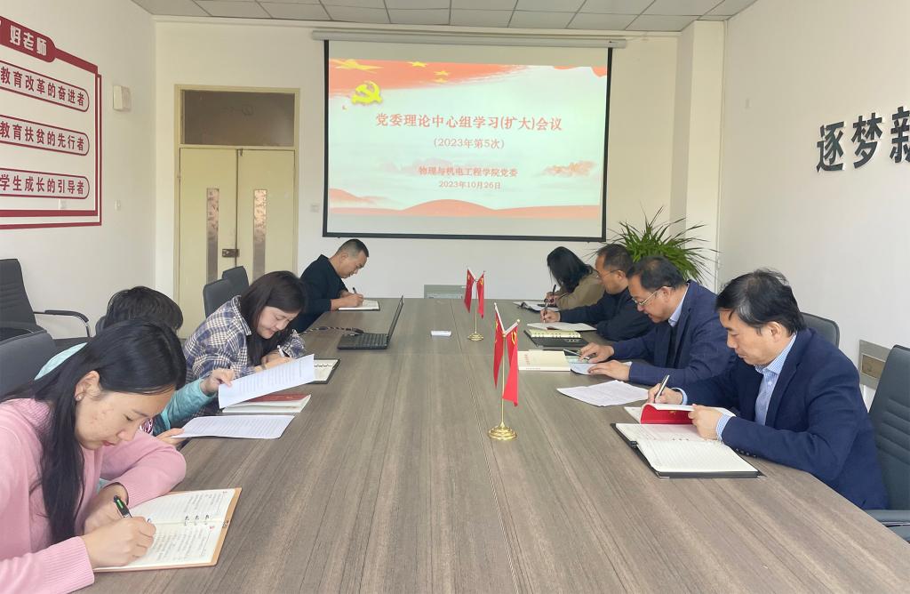 10月26日上午,物理与机电工程学院召开党委理论中心组(扩大)学习会议。会议由学院党委负责人主持,中心组成员、各党支部书记参加了学习会。