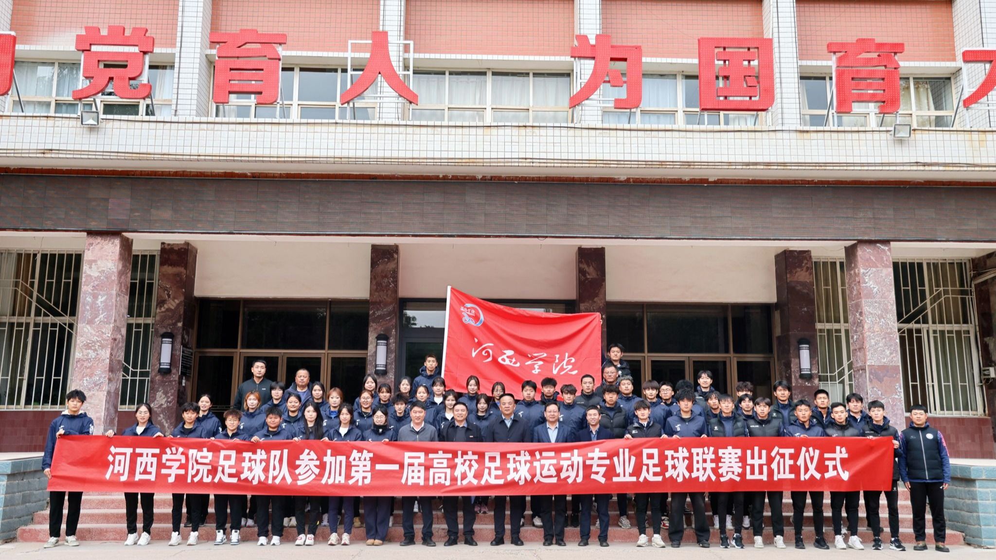10月24日下午,学校在行政楼前举行“绿茵逐梦,青春出征——河西学院足球队参加全国首届足球运动专业联赛出征仪式”。党委书记梁兆光出席并授旗。党委常委、副校长唐志强出席并讲话。
