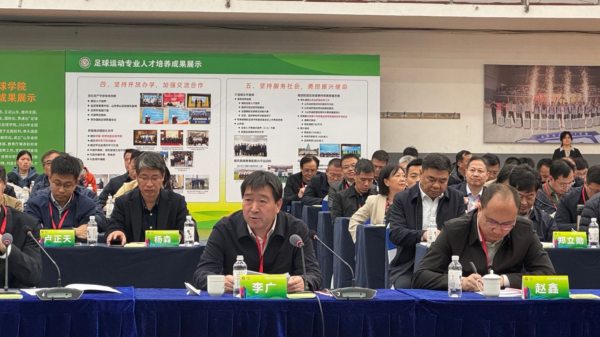 李广在发言中介绍了学校办学基本情况和人才援疆工作,交流了学校加强足球专业建设的做法和成效。他指出,作为全国首批、甘肃省唯一获批足球专业的30所高校之一,学校认真学习领悟习近平总书记对足球工作作出的重要指示批示精神和全国足球工作会议精神,严格对标《高等学校足球运动专业建设指南》,聚焦“实战型、应用型”人才培养目标,持续优化课程体系,推进“学、练、赛、评”一体化教学模式创新,依托国家一流课程和省级教学团队,编写《足球技能与战术》等校本特色教材,建设在线开放课程资源库,创设“河西足球论坛”,设立名师工作室,不断提升教育教学质量;学校在人员、资金、场地、器材等方面给予足球专业优先支持,为专业建设和发展奠定了良好基础。学校将以此次联赛和座谈会为契机,学习借鉴兄弟院校成功经验,全面推进足球运动专业教学改革,拓宽体育教育广度与深度,培养高质量专业化体育人才,为体育强国建设贡献地方高校力量。