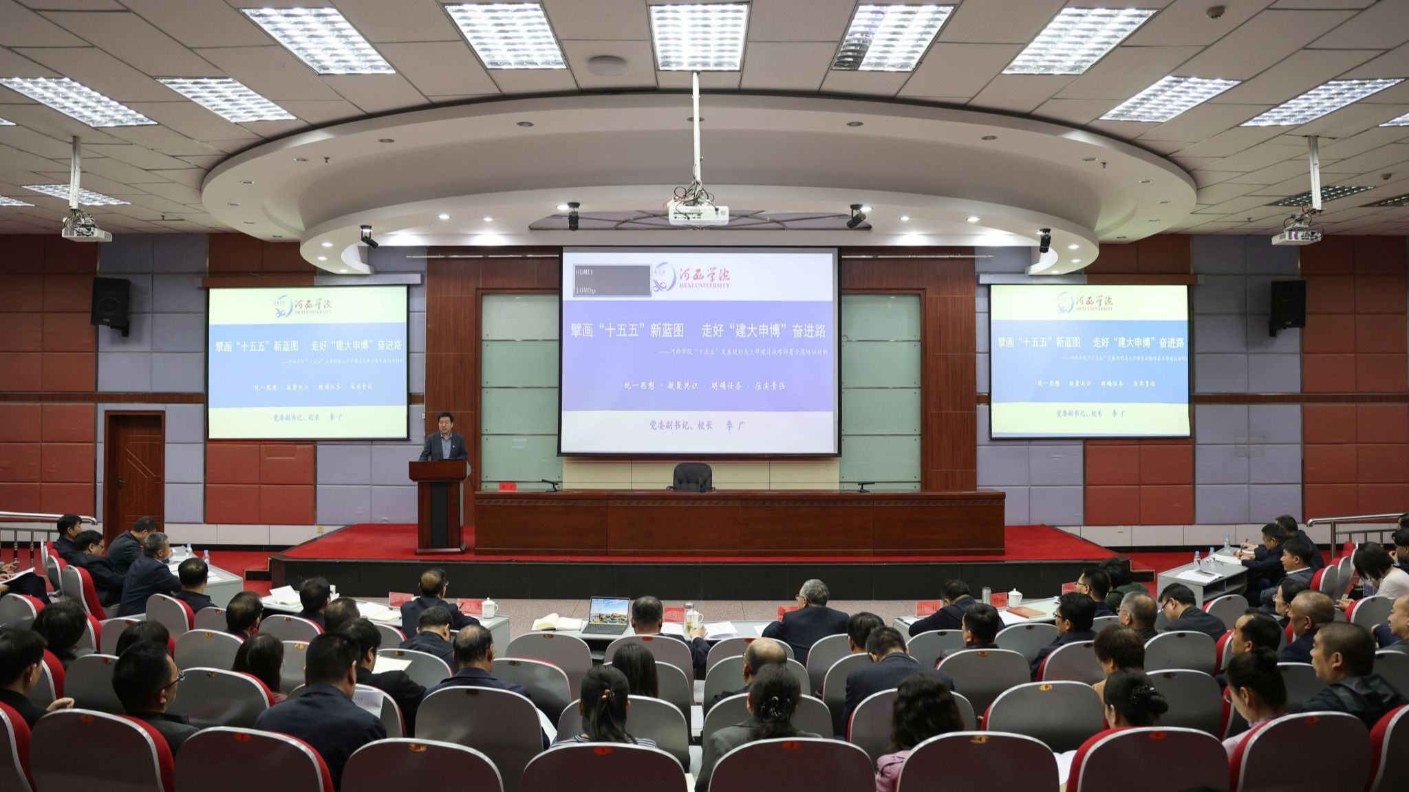李广强调,“十五五”是学校锚定更名大学目标、推进内涵式高质量发展、实现办学层次历史性跨越的攻坚五年。全校上下要深入学习贯彻党的二十届四中全会精神,精准对接国家战略、立足区域需求,找准办学定位、突出办学特色、提升办学质量,切实把思想、行动、智慧、力量汇聚到大学建设、提质进位、强校兴院的目标任务上来,凝聚学校改革思想共识,紧扣学校发展实际现状,破解管理体制机制、工作理念方法、人才引育模式、学科专业布局、内涵建设等方面的顽瘴痼疾,增强忧患意识,同心同德、攻坚克难,确保“十五五”目标圆满实现,奋力谱写河西学院内涵式高质量发展新篇章。