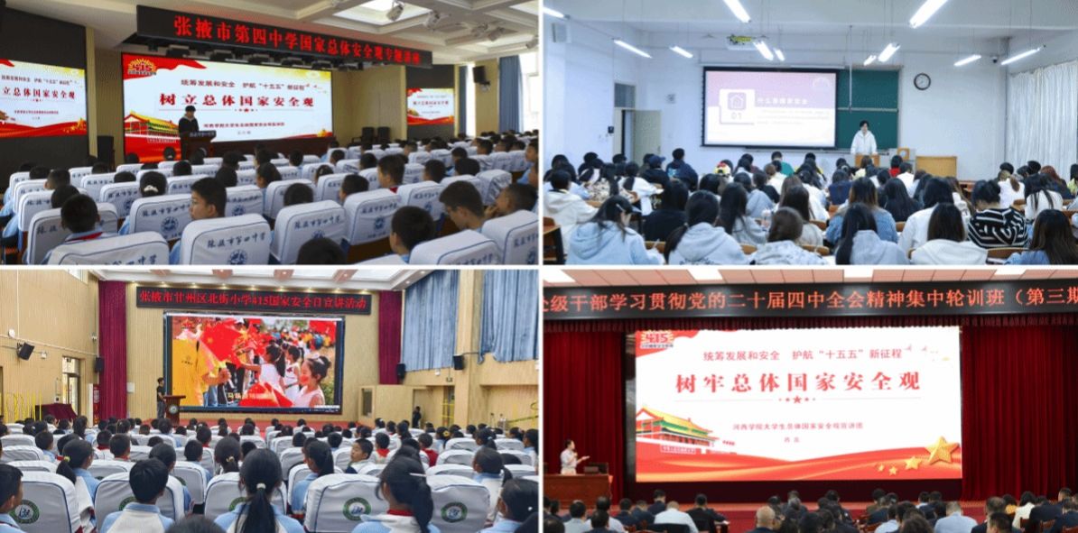 为深入践行总体国家安全观,在第十一个全民国家安全教育日来临之际,河西学院大学生总体国家安全观宣讲团先后走进张掖市县处级干部轮训班、张发集团、张掖市第四中学、甘州区北街小学、河西学院各团支部,开展多场主题宣讲活动。