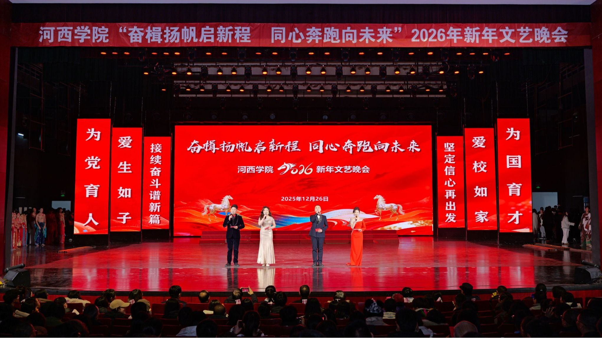 12月26日晚,河西学院“奋楫扬帆启新程 同心奔跑向未来”2026年新年文艺晚会在河西讲堂举行。张掖市委常委、组织部部长李毓刚,张掖市政协副主席牛生乐,张掖市委副秘书长陈军霖,山丹县人民政府县长黄国杰、甘州区委常委、宣传部部长安丽莉,肃南县委常委、统战部部长王怀成,甘州区人民政府副区长王瑞,临泽县人民政府副县长贾燕,民乐县人民政府副县长李玉莲等六县区领导;学校党委书记梁兆光及全体在家校领导、党委常委殷大斌、...